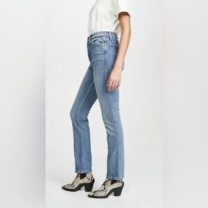 RE/DONE Double Needle Long High Waist Button Fly Jeans Straight Cut Hazey Indigo