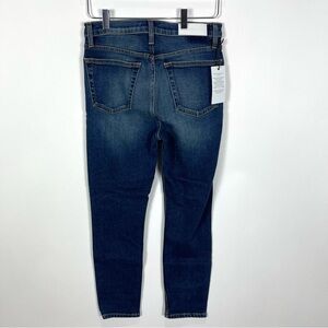 RE/DONE High Rise Ankle Crop Jeans. Cropped skinny leg. Whiskering effect at the thighs. Some stretch in denim. Wash: Midnight Blue. Brand new with tags. Size 23, 24, 26, 28, 30.