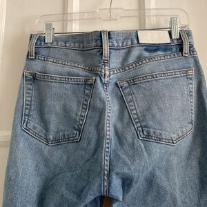 Style profile: designer USA light wash button fly high rise raw hem denim jeans cotton lightweight