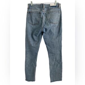 RE/DONE High Rise Raw Hem Ankle Crop Button Fly Jeans in Super Light Wash - 29