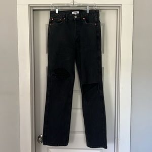 Distressed Black RE/DONE High Rise Rigid Loose Jeans in size 28