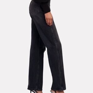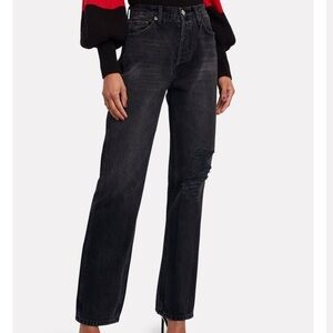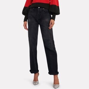 RE/DONE perfects vintage-inspired denim with this loose straight-leg style. With a waist-hugging high-rise and strategic distressing, this pair comes in a worn-in black wash. Five pocket styling. Button fly.