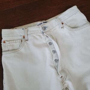 RE/DONE Levi's White Distressed Fringe Hem Straight Leg Button Fly Jeans Women's Size 27