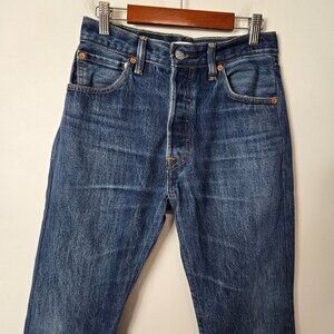 RE/DONE Levis Women's Size 25 Leandra High Rise Crop Flare Blue Button-Fly Raw Hem