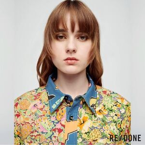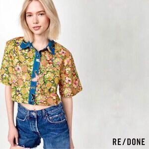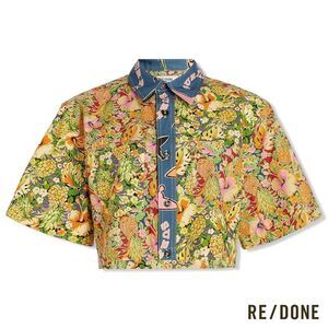 RE/DONE **NWT** Oversized Crop Shirt in Multi pineapple