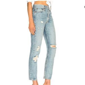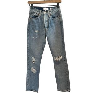 RE/DONE ORIGINALS High Rise Straight in Light Destruction Wash Size 23