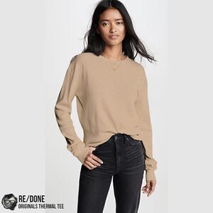 RE/DONE Originals Long Sleeve Thermal T-Shirt in Sand Tan Women’s Size Small