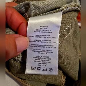 Stylish RE/DONE pants in washed sage. Made from 100% cotton. Comfortable and trendy.