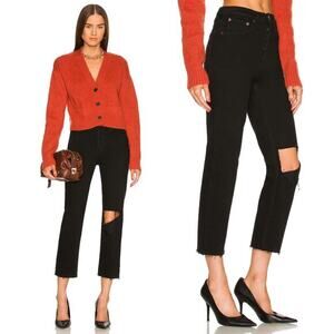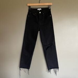 RE/DONE Originals 70s Stove Pipe Jeans Noir with Rip Size 24 Black Straight Leg