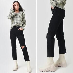 RE/DONE Originals 70s Stove Pipe Jeans in Noir with Rip, Black, Size 24, Straight Leg, High Rise, High Waist, High Waisted, Intentionally Ripped Knee, In like new condition with no flaws or signs of wear.