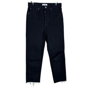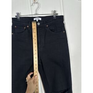 RE/DONE Originals 70s Stove Pipe Noir with Rip Cropped Jeans 27-Black Button Fly
