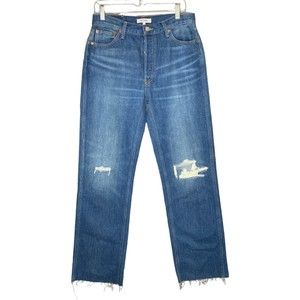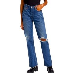 RE/DONE Originals 90s High Rise Loose in Destroyed Broken Blue 29 Button Fly