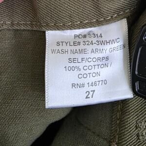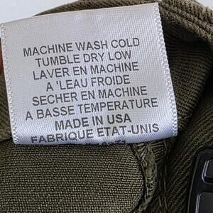 100% cotton. Adjustable metal waist tabs. Zip fly with expose button-keyhole accent closure.