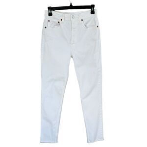 RE/DONE Originals SZ 27 High-Rise Ankle Crop Jeans Button-Fly Frayed Hems White