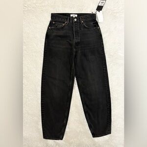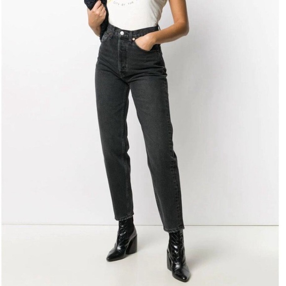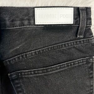 NWT! RE/DONE High Rise Pixie jeans showcase distressed pockets edges and hems in a washed style denim. Color: Noir