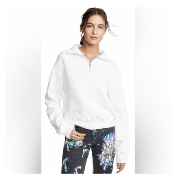 RE/DONE Pullover Womens Small Off White Half Zip Sweatshirt Made in USA- Blogger Favorite