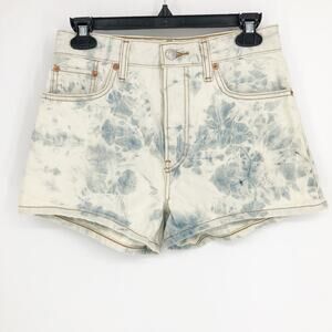 RE/DONE Womens 70s High Rise Denim Shorts 0/25 Sunbleach Blue Acid Wash NWT