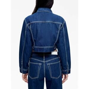RE/DONE Women's Chunky Stitch Cropped Denim Jacket Small Blue Indigo Collar NWOT