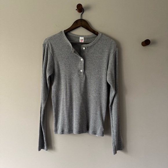 RE/DONE X HANES LONG SLEEVE WAFFLE KNIT THERMAL HENLEY GRAY SIZE XS