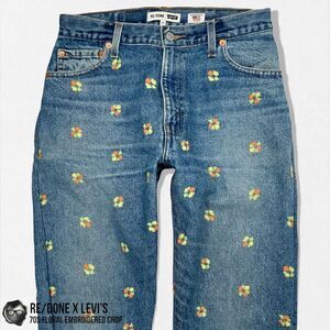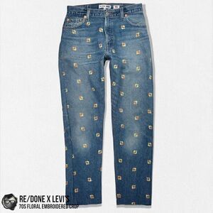RE/DONE x Levi's 70s Floral Embroidered Oversized Baggy Vintage Jeans Size 26