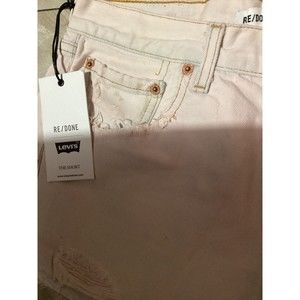REDONE X Levis The Short Light Pink Size 26 100% cotton Distressed 5 button closure Short shorts Rise 11 Inseam 2 New with flaws: light pen marks on front and small smudge on the other side. All can be removed after washing.