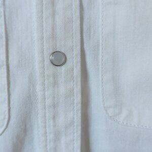 RE/DONE white denim shirt pearl snap crop XS western cowgirl casual cotton rodeo