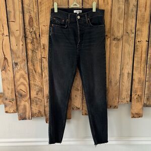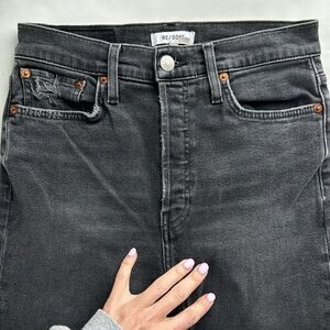 RE/DONE 90s High-Rise Ankle Crop Jeans Size 28 Faded Coal Button Fly Raw Hem