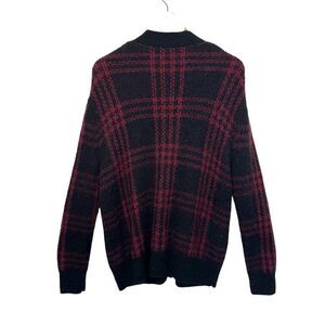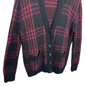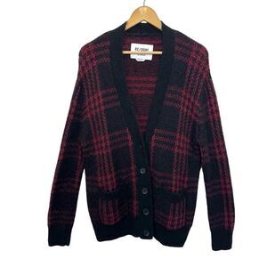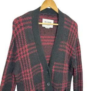 RE/DONE 90's Oversized Button Front Cardigan Sweater Black Burgundy Plaid Size XS