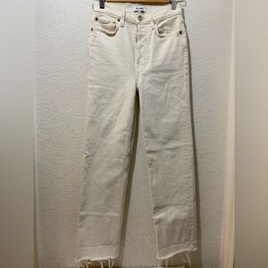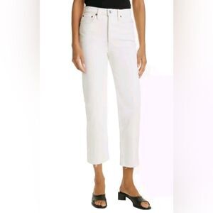 RE/DONE Hi-rise ankle cropped jeans frayed hem in white size 24