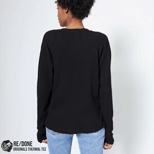RE/DONE ORIGINALS WOMEN’S THERMAL KNIT LONG SLEEVE TEE SHIRT IN BLACK SIZE SMALL
