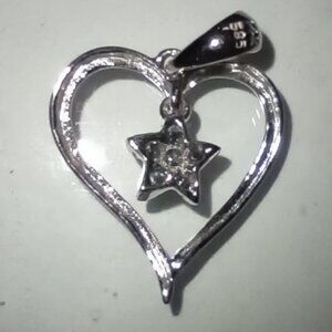 REDUCED! 14Kt White Gold Green Diamond Star-Heart Pendant