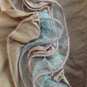 Teal short sleeve cropped jacket with ruffles. Never been worn!! This jacket wraps around and ties at waist, has inside and outside ties.