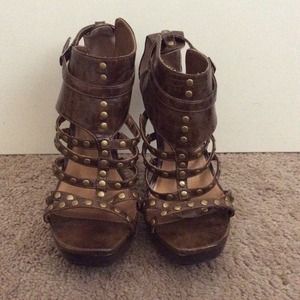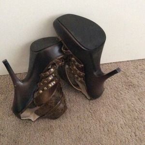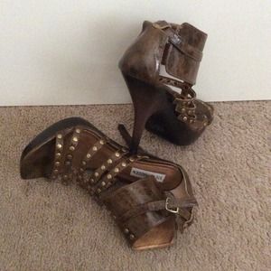 Hot Steve Madden heels that have only been worn a few times. They look good with any outfit and very comfortable. A few little scuffs but nothing very noticeable. Had many compliments on them.