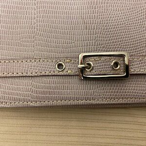 REDUCED! Nice MAXX New York leather wallet. New with tag. Flap with snap closure. Very pretty fabric lining. Beautiful strap with buckle and gromets in front. Zip pocket in back. Inside: zip pocket, 6 CC slots and 3 full length compartments. 7.5"w x 3.5"h x 7/8"d (empty). All approximate. Very roomy and user friendly.