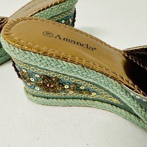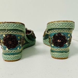 Special shoes. Fit size 8 to 8.5. Marked 8.5. Feel like a Queen. Turquoise beige and gold. Can be formal or with jeans.