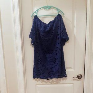 REDUCED! NWT Stunning Navy Blue Off/On the Shld Eyelet Dress Fully Lined Size L