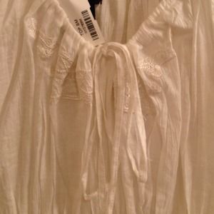 Beautiful top, white with ruffle detail at bottom. Drawstring at bust as well as stitching detail at bust and on sleeves. Never been worn!