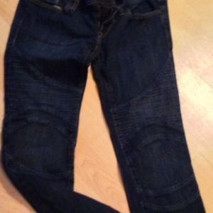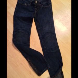 Great dark denim Jeans- skinny with zip at ankles! great designs at knee area - kinda equestrian look with flattering pockets in the rear! cotton and stretch- barely worn