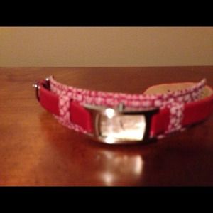 red leather and guess signature canvas print watch!