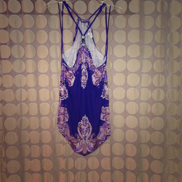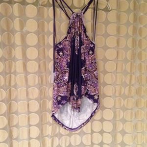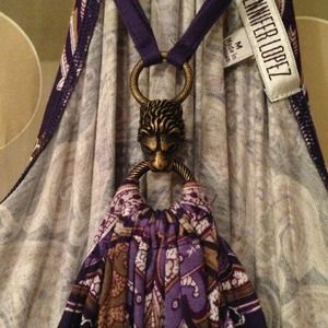 JLo bandana tank, lion metal piece holding the strings together, front lower than the back