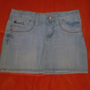 Light colored Jean skirt. Perfect condition. I only wore it twice. Really cute dressed up or dressed down.