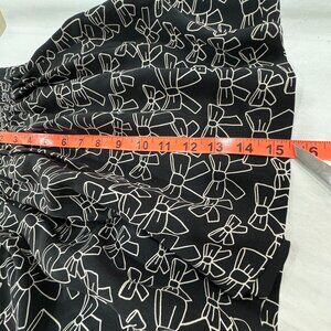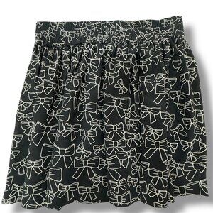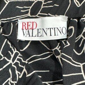 REDValentino Small Black Pleated Mini Skirt White Line Drawn Bow Pattern