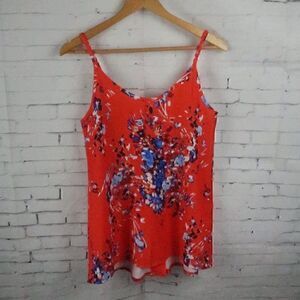 RED WITH BLUE PAINT SPLASH DESIGN BUTTON DOWN TANK TOP SIZE SMALL ADJUSTABLE STRAPS PRE OWNED NO FLAWS