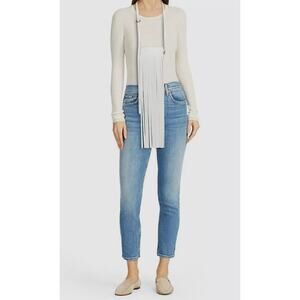 This chic, white leather crossbody sling bag is crafted from smooth cowhide leather and features fringe detailing. The sleek design has leather lining accented with polished brass hardware, with a secure zip closure and multiple pockets – one interior patch pocket and one exterior patch pocket – perfect for organizing your essentials.