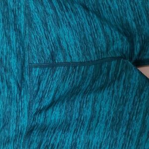 excellent preowned condition. no flaws. size XS. space dye torqoiuse and navy blue. full length leg. midrise 7".