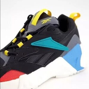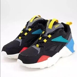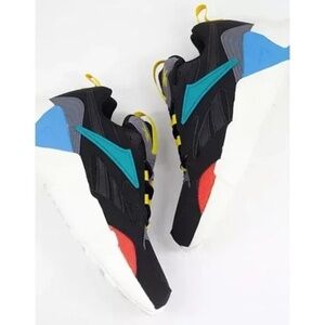 A '90s-inspired Aztrek reimagined for the future. These women's shoes have a playful, modern attitude with a stacked midsole for a platform-style look. Pops of colour add a fun, retro vibe, while the mixed textile and synthetic nubuck upper adds texture and depth. Good used condition see all photos for signs of wear. Color: Black / Alloy / Teal Gem. Size 9.5