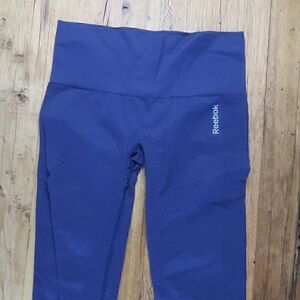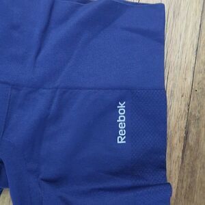 DARK BLUE WIDE WAISTBAND RUNNING TIGHTS LEGGINGS SIZE SMALL BY REEBOK PRE OWNED FLAW: HAS REPAIR IN INNER LEG OTHERWISE IN EXCELLENT CONDITION THEY ARE PHOTOGRAPHING MUCH BRIGHTER THAN THEY ARE THE LEGGINGS ARE DARK BLUE