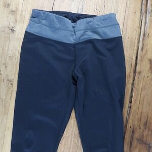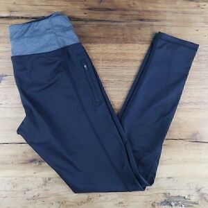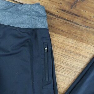 BLACK & GREY RUNNING WORKOUT GYM LEGGINGS WITH ZIPPER POCKETS WIDE WAISTBAND 2 PAIR SIZE SMALL PRE OWNED