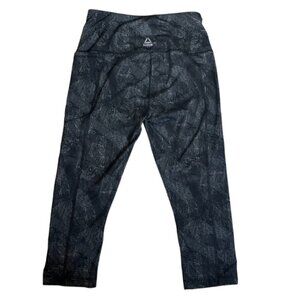 REEBOK Black & Gray Abstract Print High Waisted Capri Leggings - Size Small