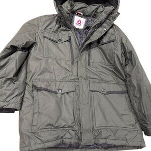 NWOT boys' multipurpose, versatile, quilted puffer jacket, size 18, perfect for sports and casual wear. It is extra warm and comfortable, with deep pockets, a wide hood, and a large collar. Excellent condition, no rips, holes, or stains. Smoke-free home.